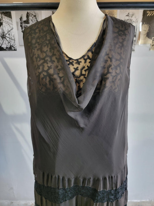 Antique 1920s Black Lace Dress | Size XL | Wendell New York | Drop Waist | Sleeveless | Flapper | Layered | ChiffonRegular price $249.00 CADRegular priceUnit price / per-