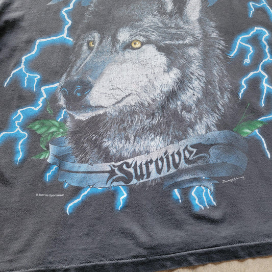 Vintage 90s American Thunder Wolf T-Shirt | USA | Only The Strong Survive | Boxy XL Fit | Single Stitch | Faded | Worn | Lightning | BikerRegular price $65.00 CADRegular priceUnit price / per-