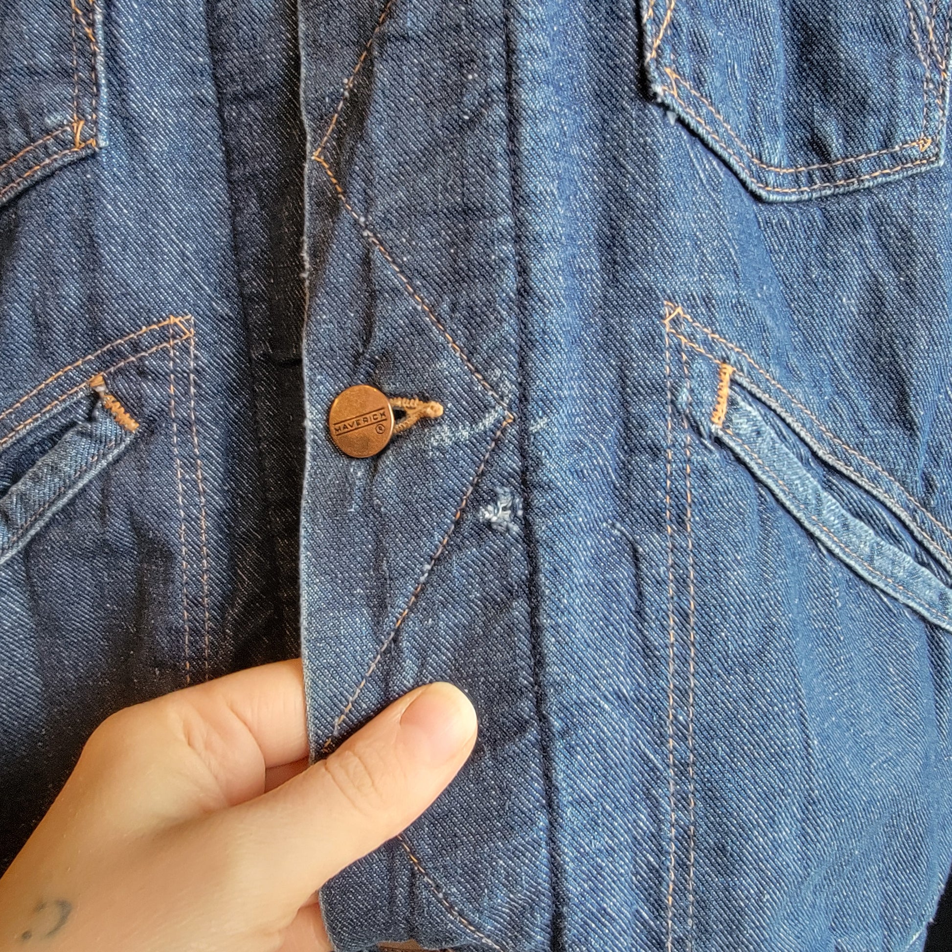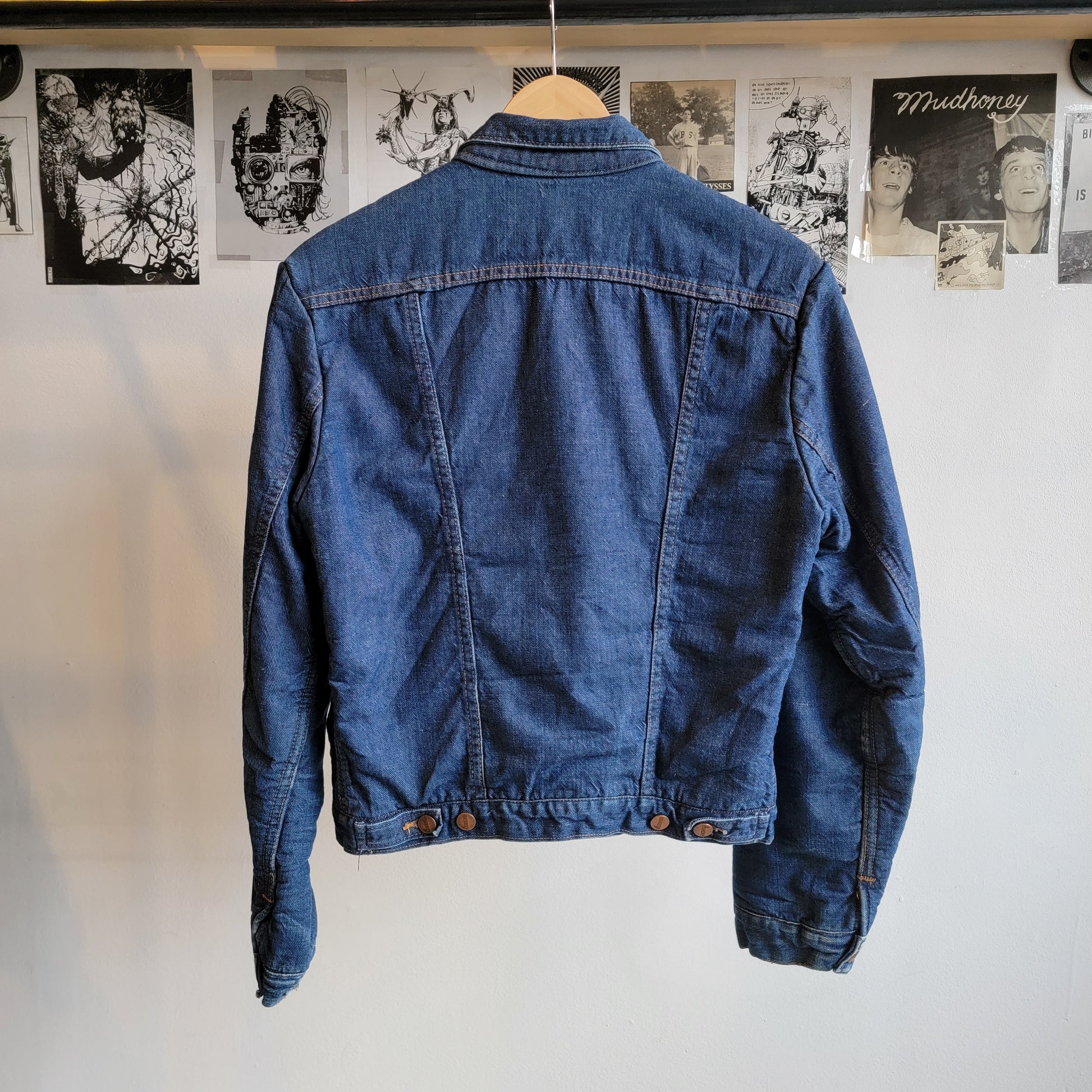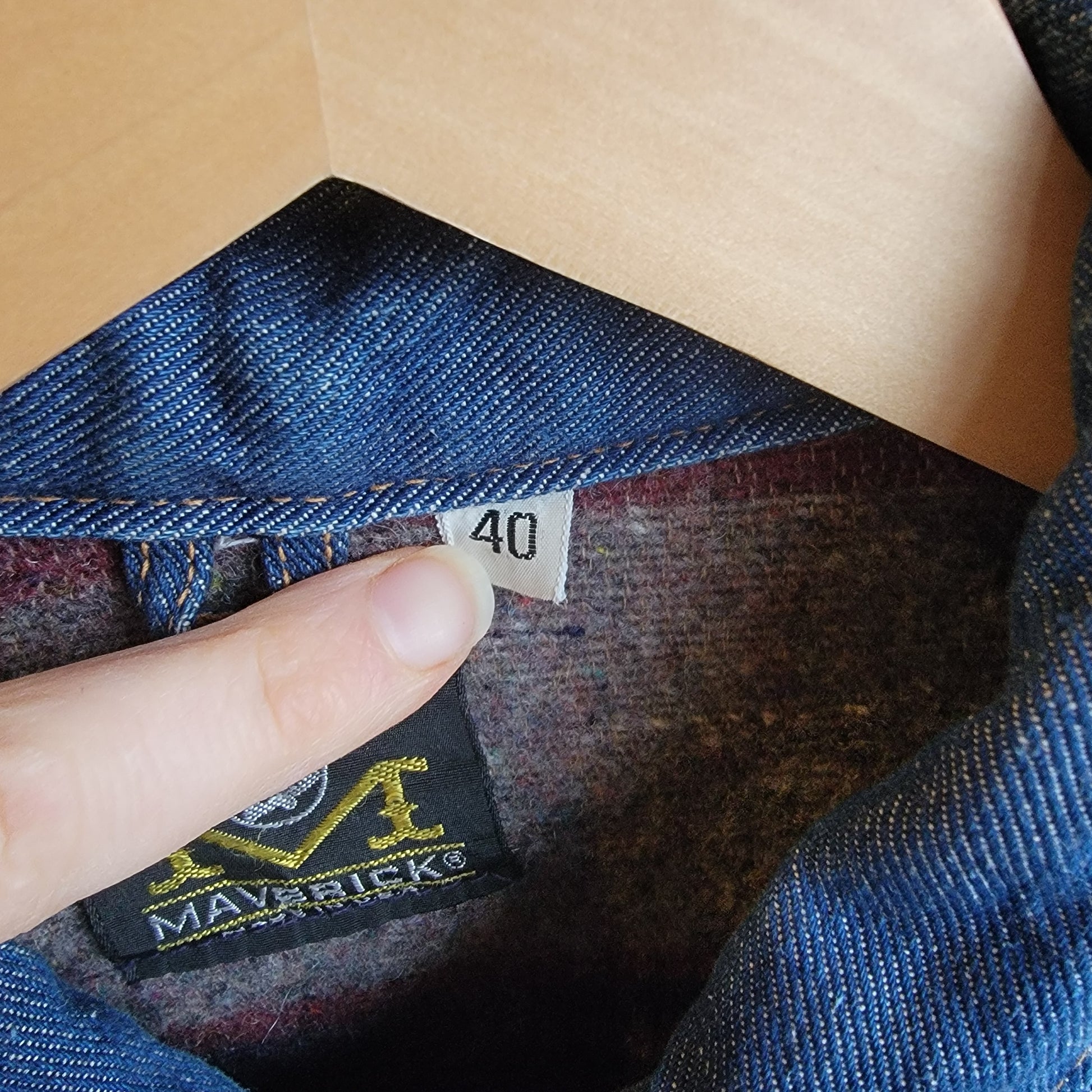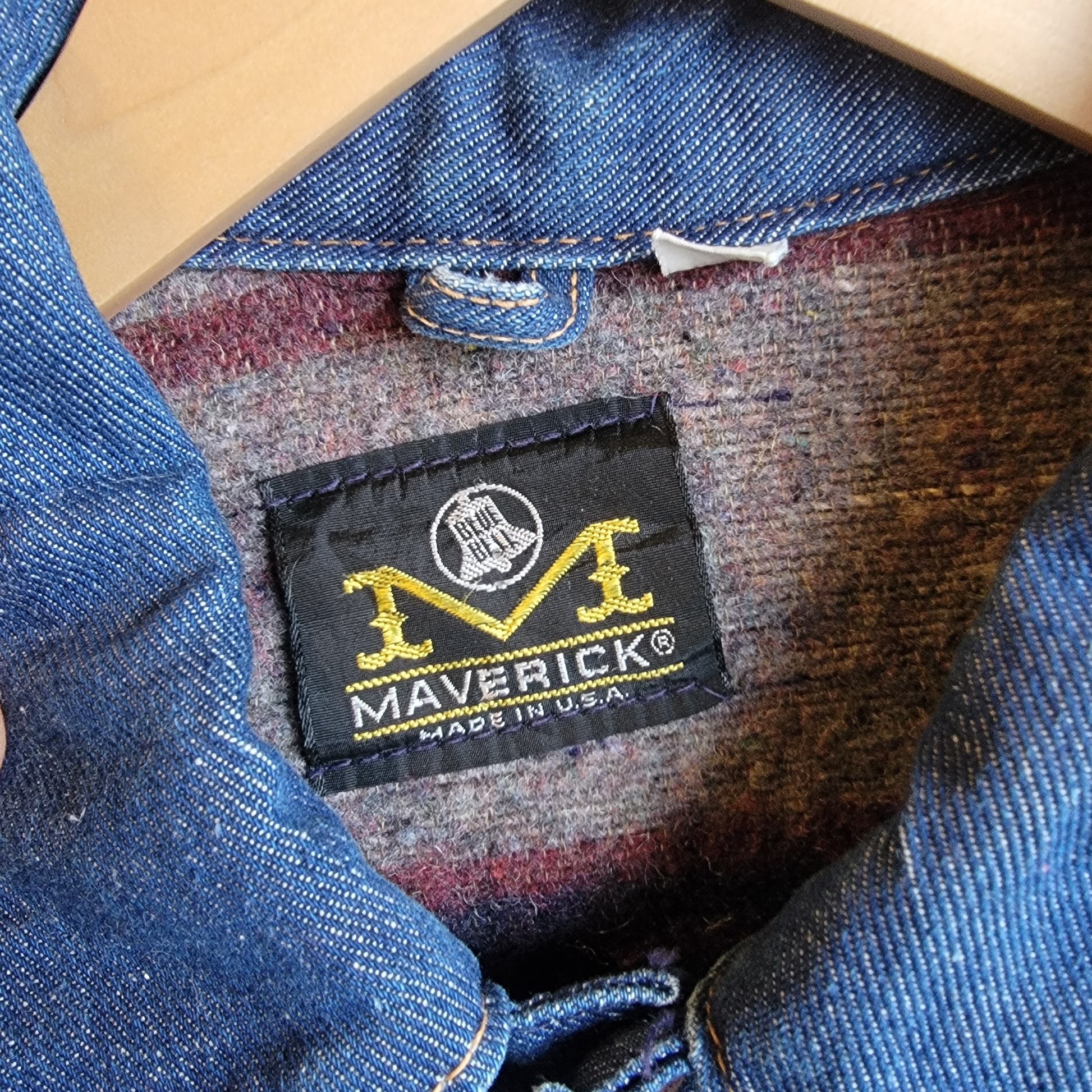 A vintage Maverick / Blue Bell denim jacket with blanket lining from the 60s. It's a size 40 / medium. There is a selvedge edge along the inside of the button flap. The jacket is in excellent condition, hardly worn with only one small mend on the front.