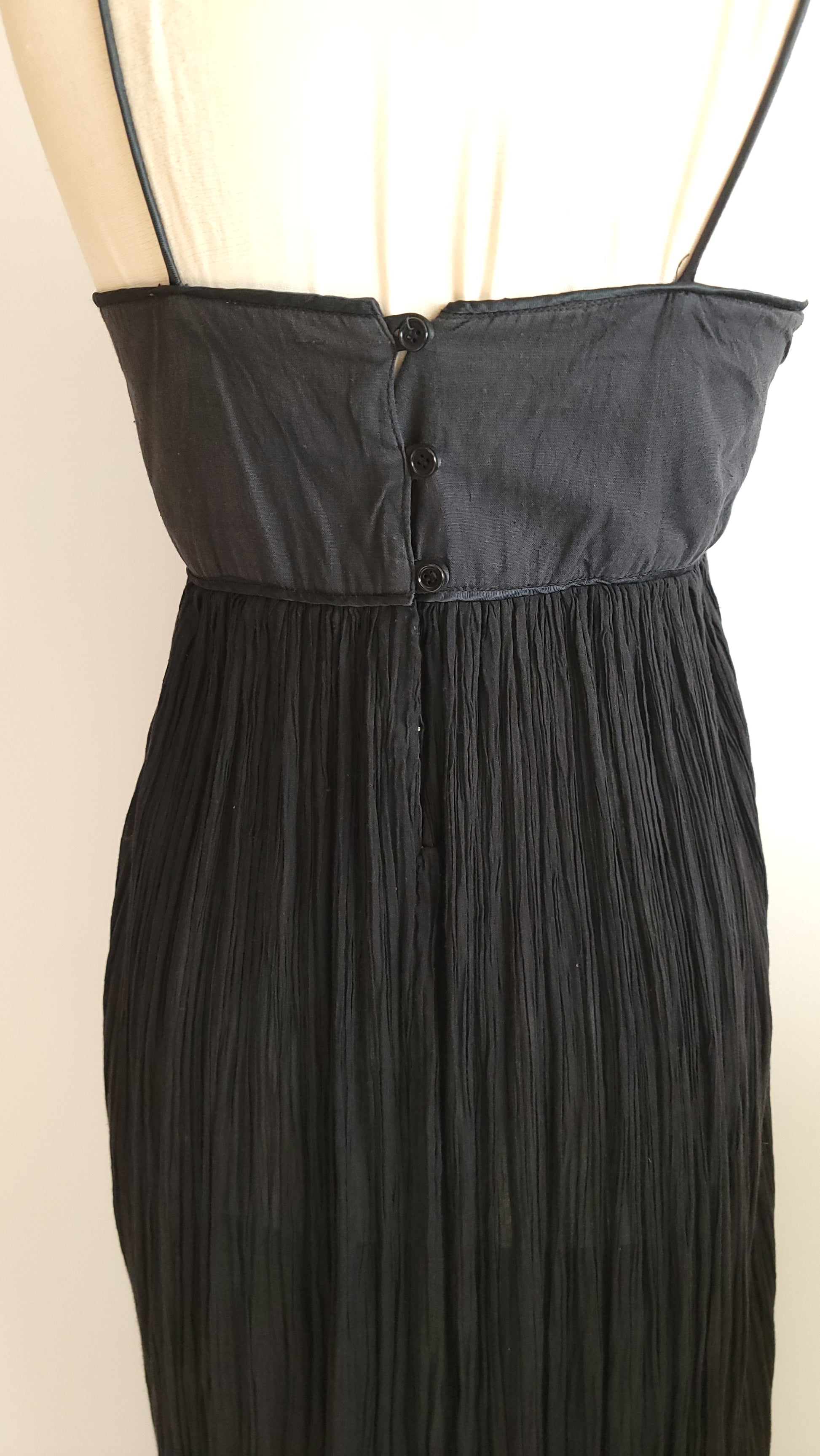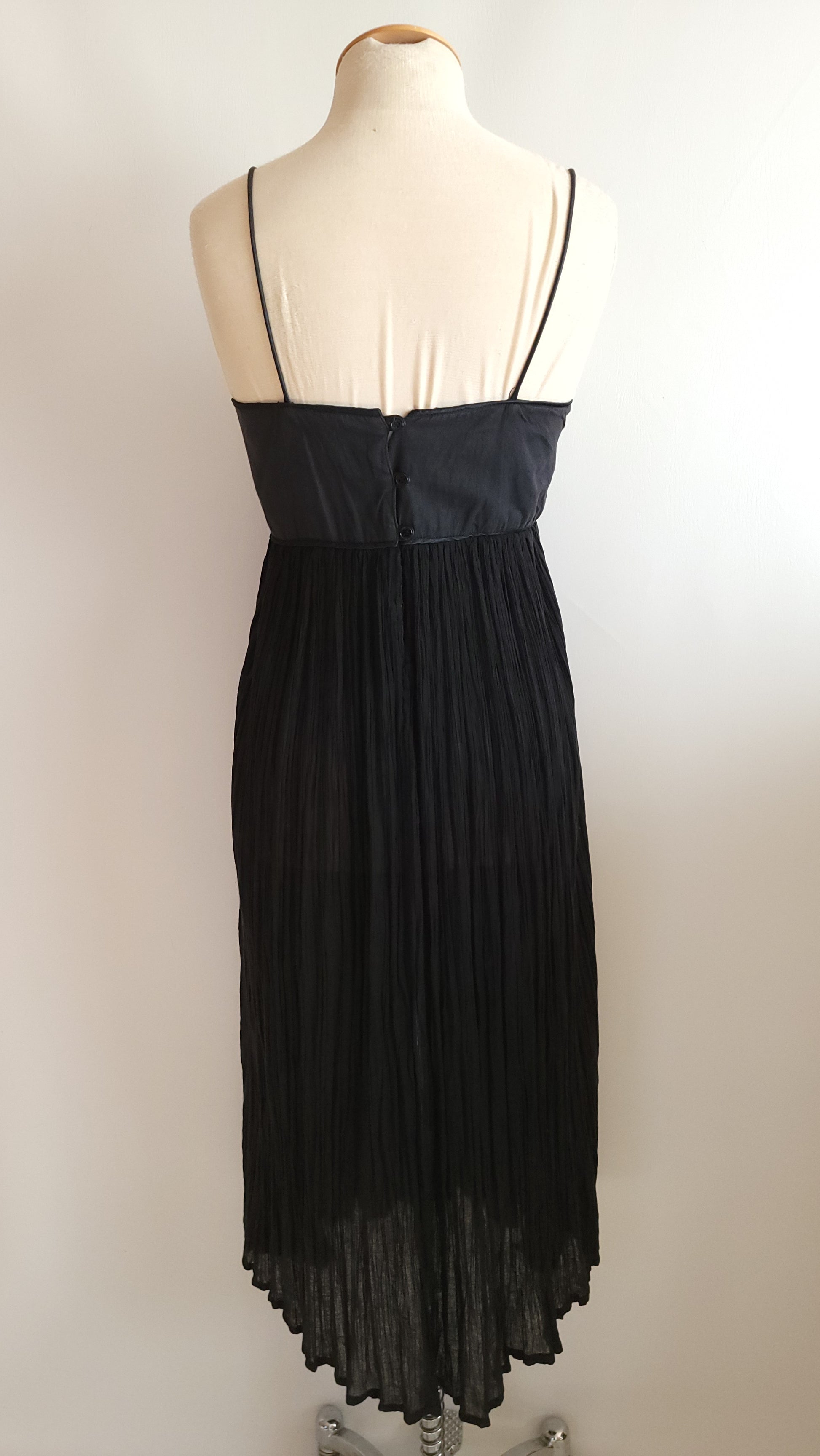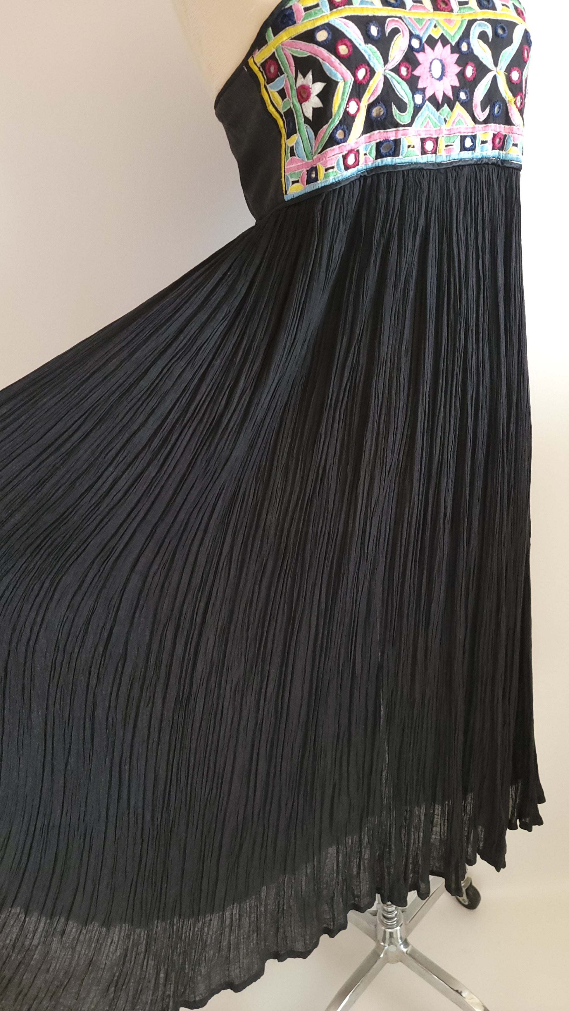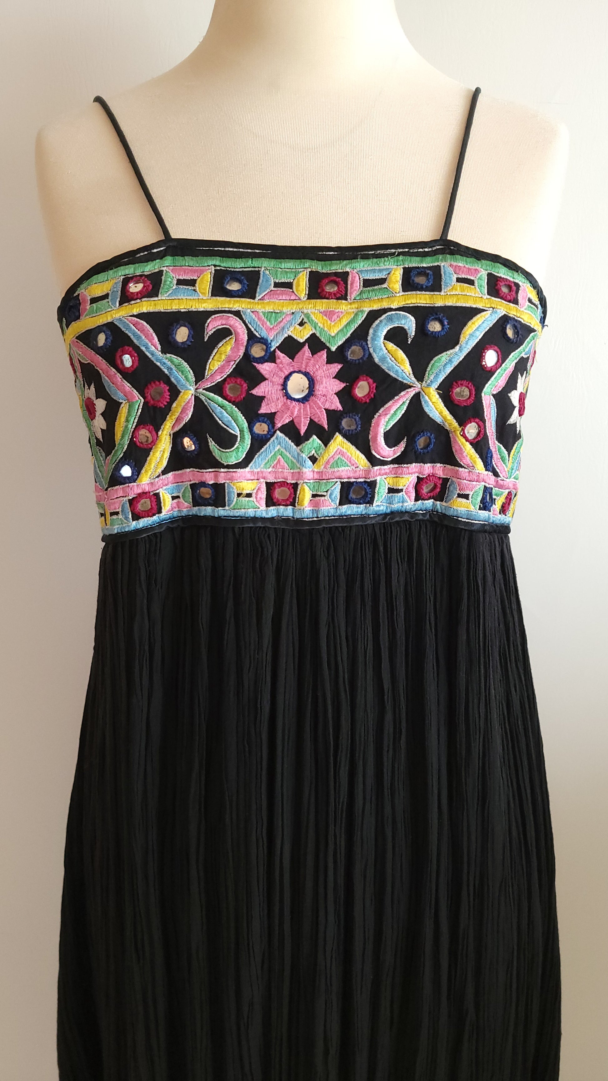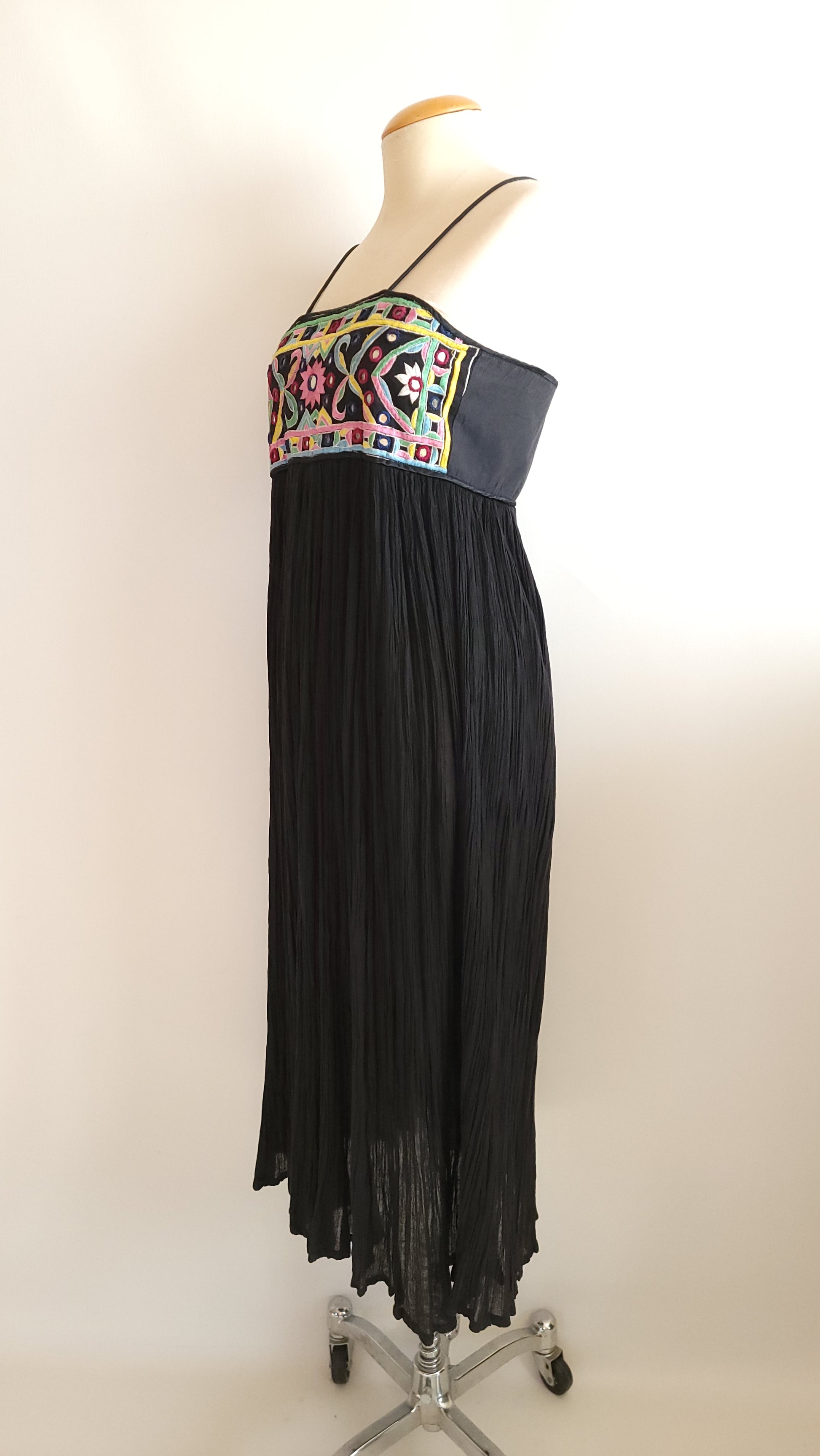 A wonderful vintage dress from the 1970s made in India of fine cotton. The dress has a contemporary style with spaghetti straps while retaining the boho classic style. Perfect for summer. It's in excellent condition. Fits XS to Small.