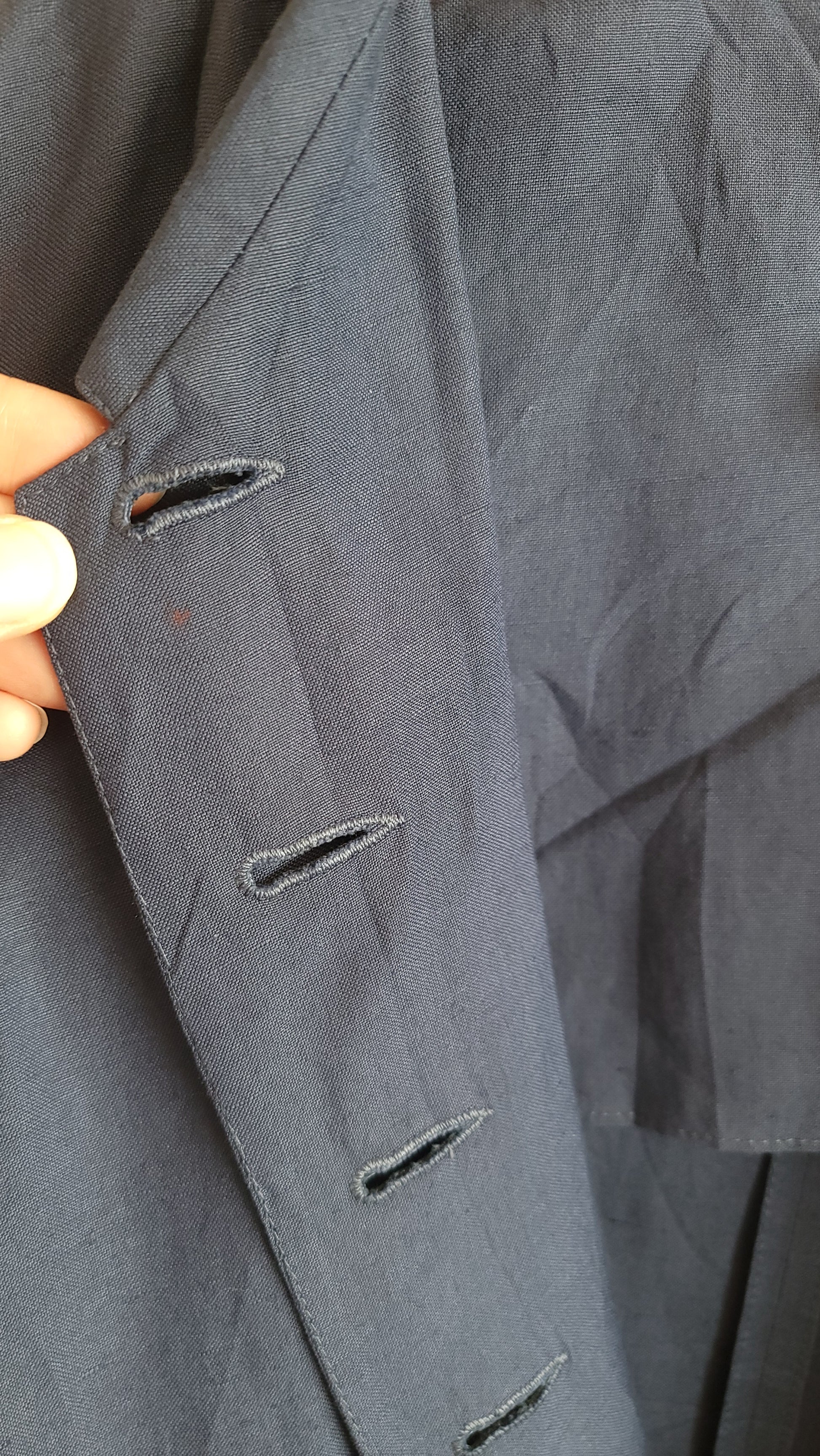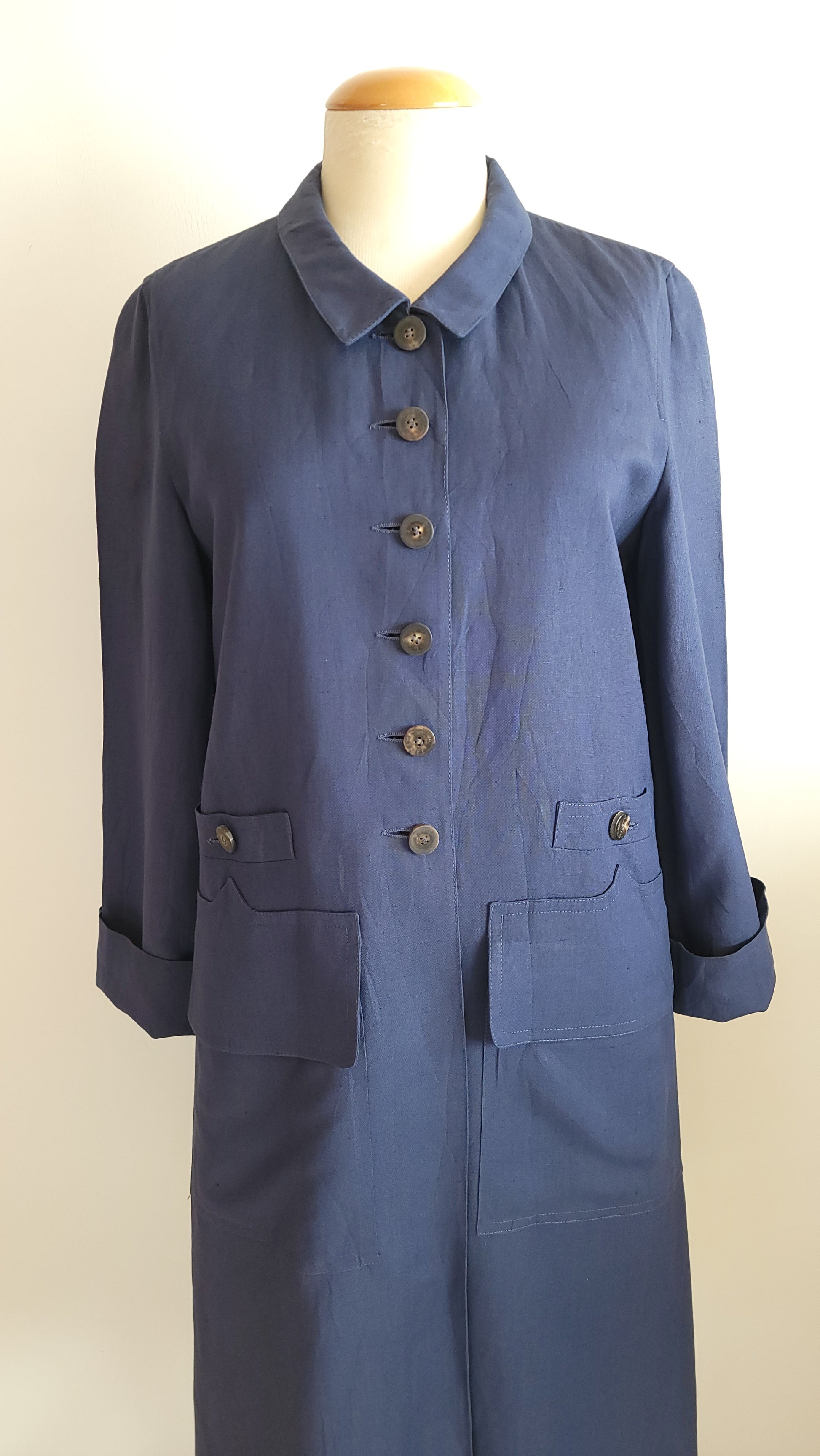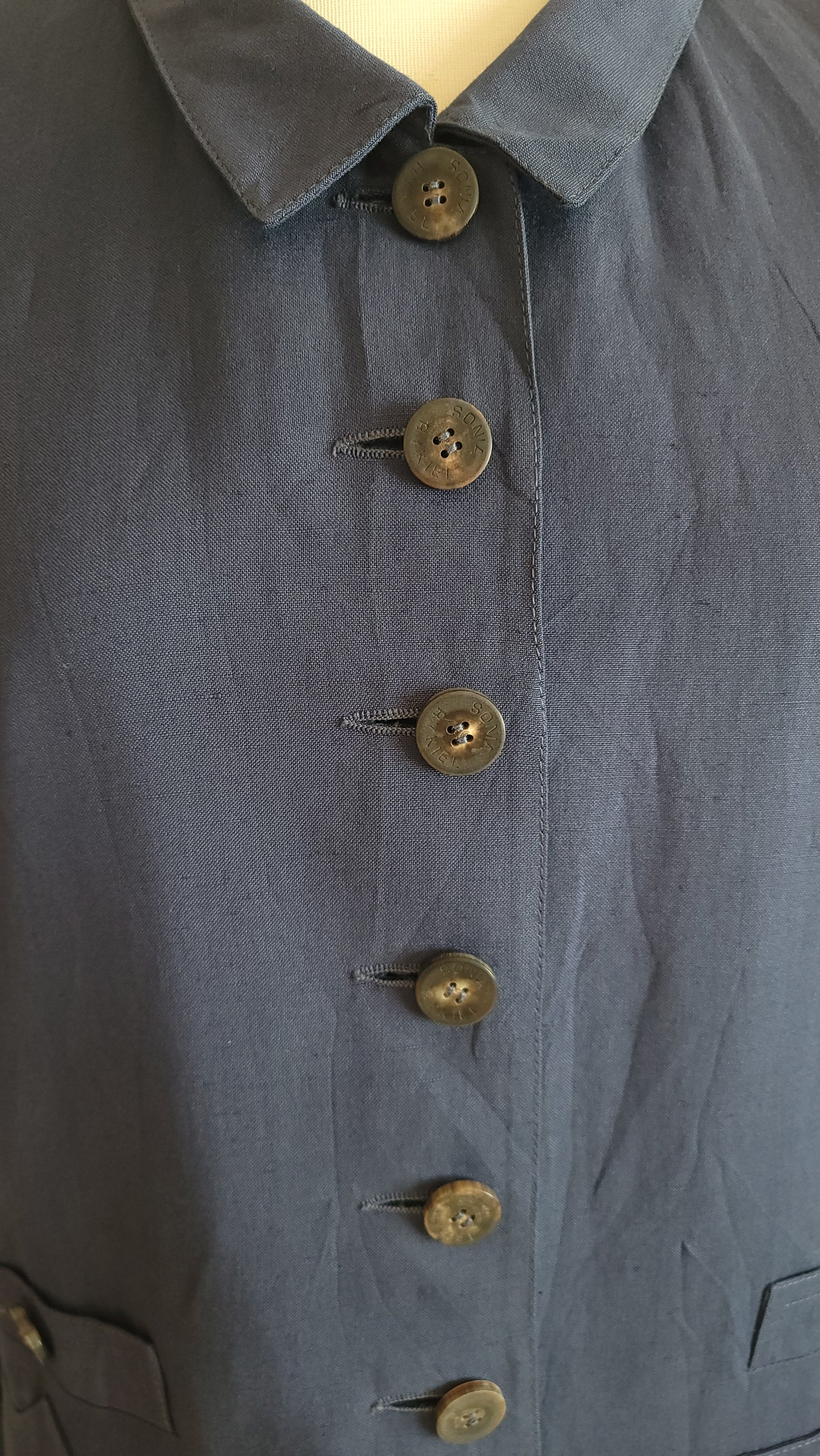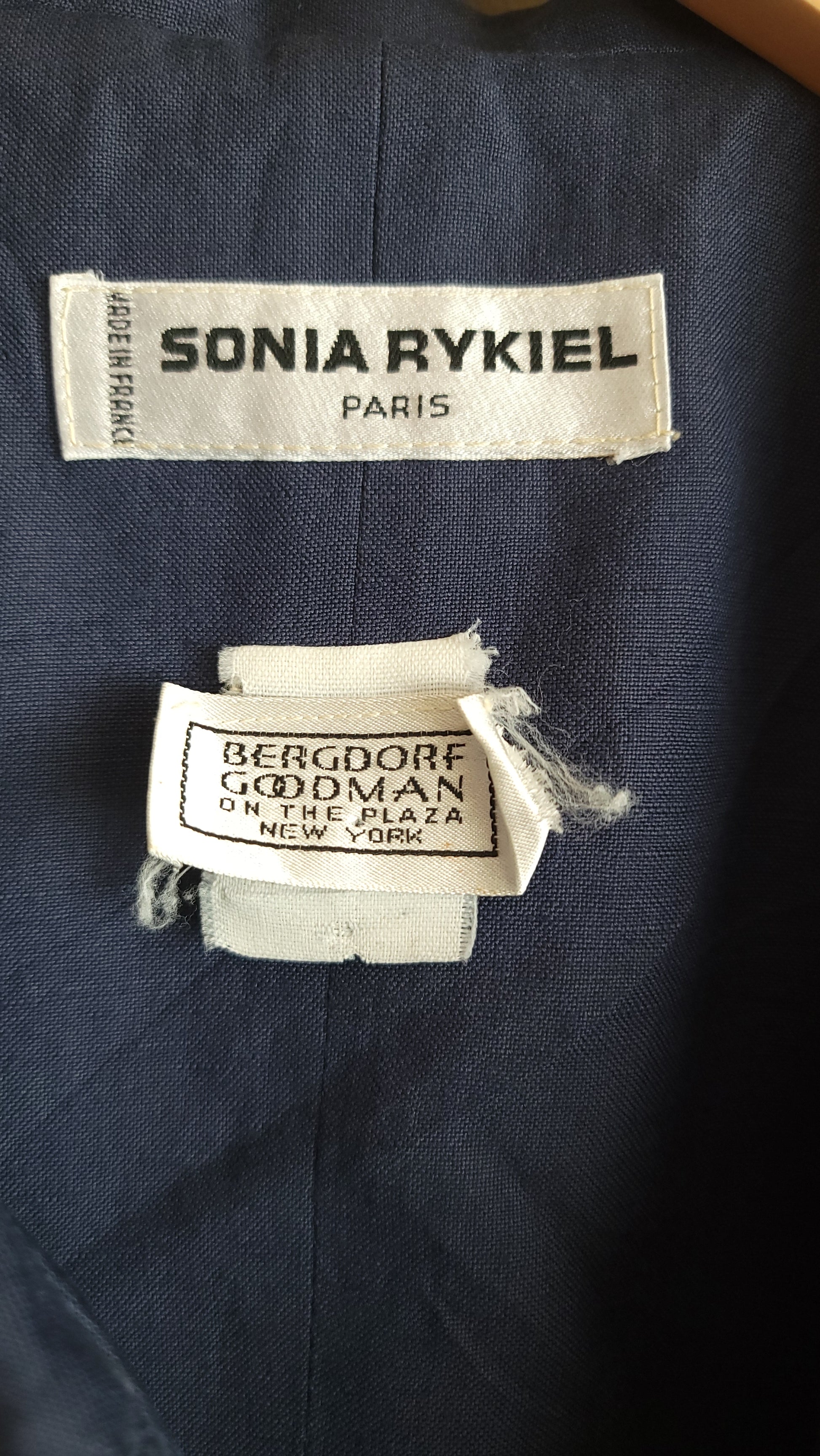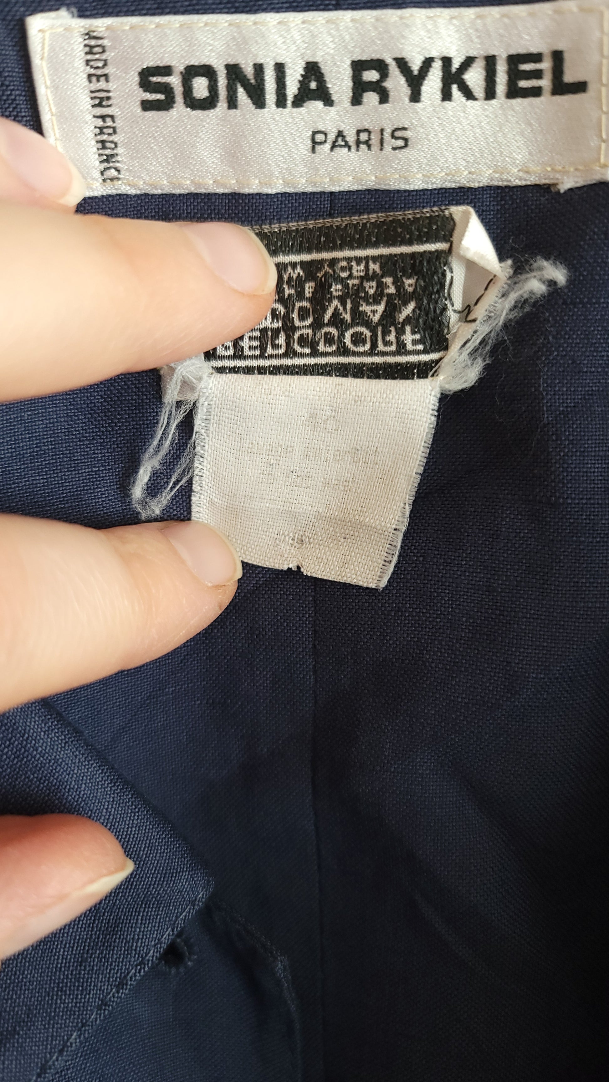 A vintage designer jacket by Sonia Rykiel Paris from the 90s. It is a classy, yet casual piece. Lightweight, made from rayon, no lining. Subtle designer details. It has barely any wear and the only thing to note is a slightly dark spot on one sleeve which should come out with dry-cleaning. Made in Paris, sold at Bergdorf Goodman. The size is 40, fits like size small.